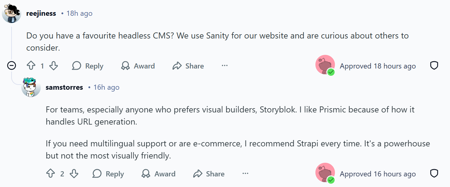 Do you have a favourite headless CMS? We use Sanity for our website and are curious about others to consider.